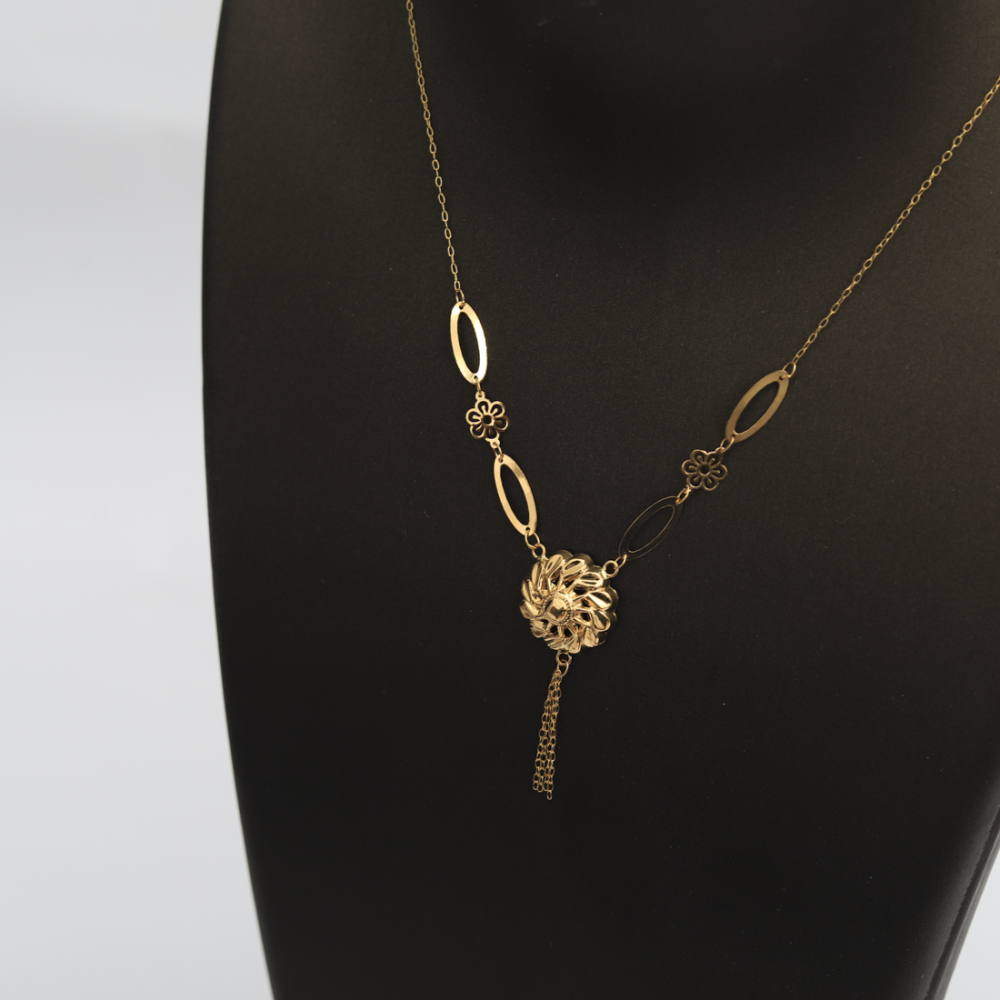 عقد ذهب بتصميم فخم ، ولافت، وطول أنيق ينساب على الرقبة بكل تألق، تفاصيله الهادئة تجمع بين الرقي والفخامة، لتكملي إطلالتك بأسلوب استثنائي، ومختلف. . ✨