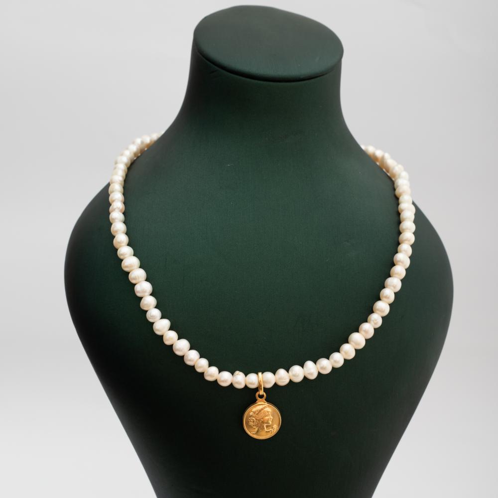 عقد ذهب لؤلؤ طبيعي زراعي الوزن يختلف من 0.40 الى 0.55